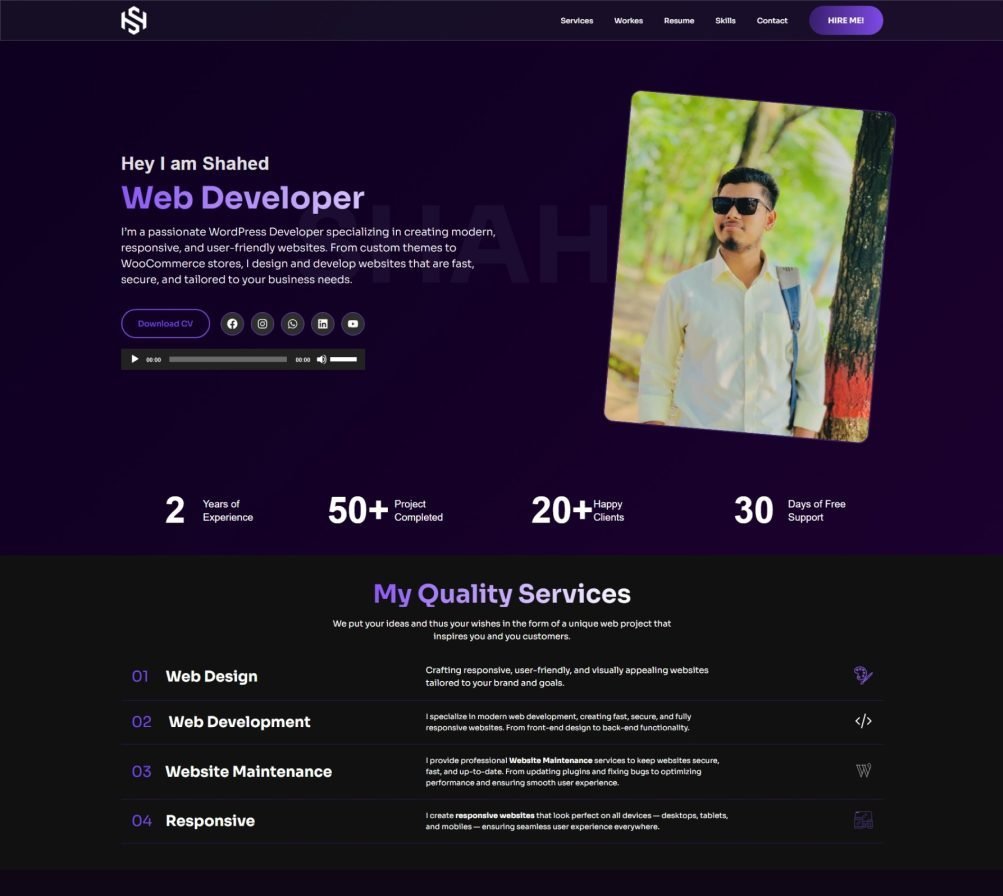 I’m a passionate WordPress Developer specializing in creating modern, responsive, and user-friendly websites. From custom themes to WooCommerce stores, I design and develop websites that are fast, secure, and tailored to your business needs.
